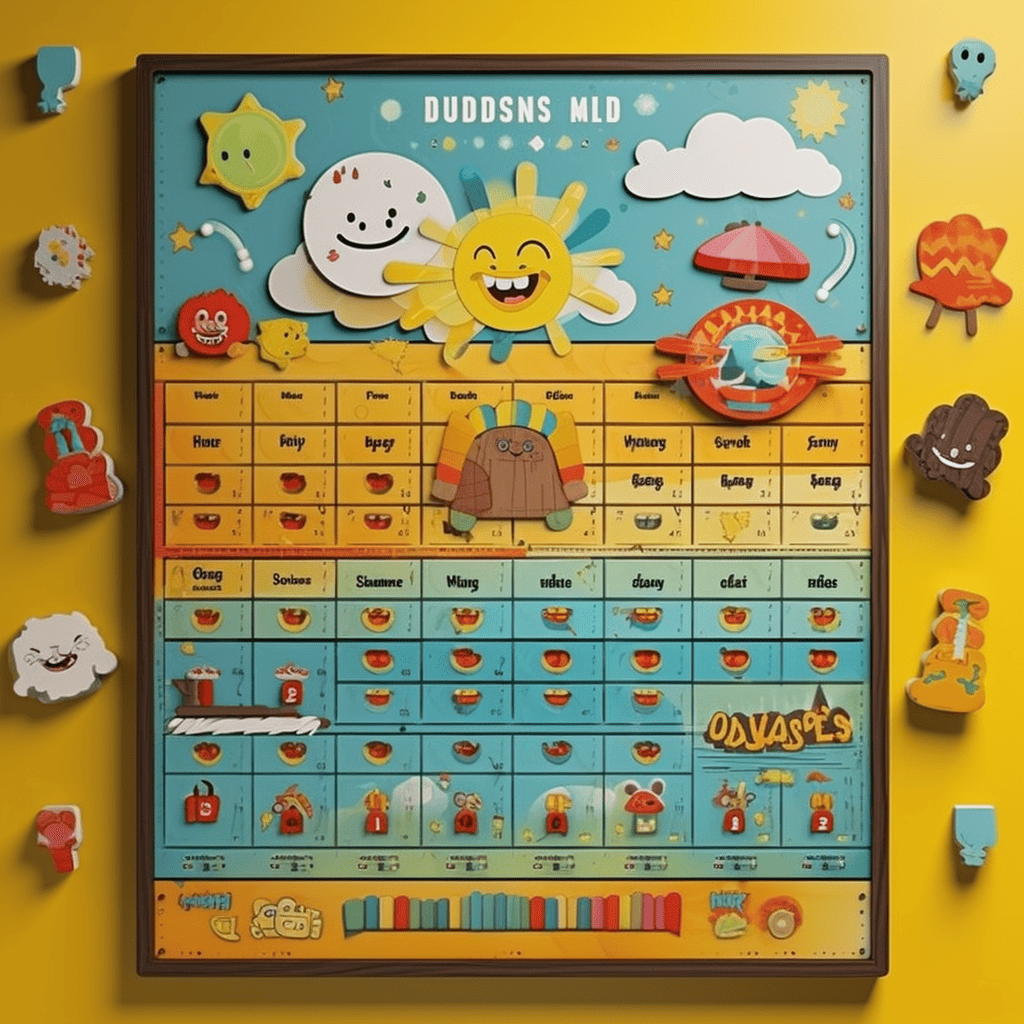 Use a large, colorful board to represent the daily schedule with pictures. Discuss each activity in the schedule, thereby introducing the concept of time and order in a fun, interactive manner.