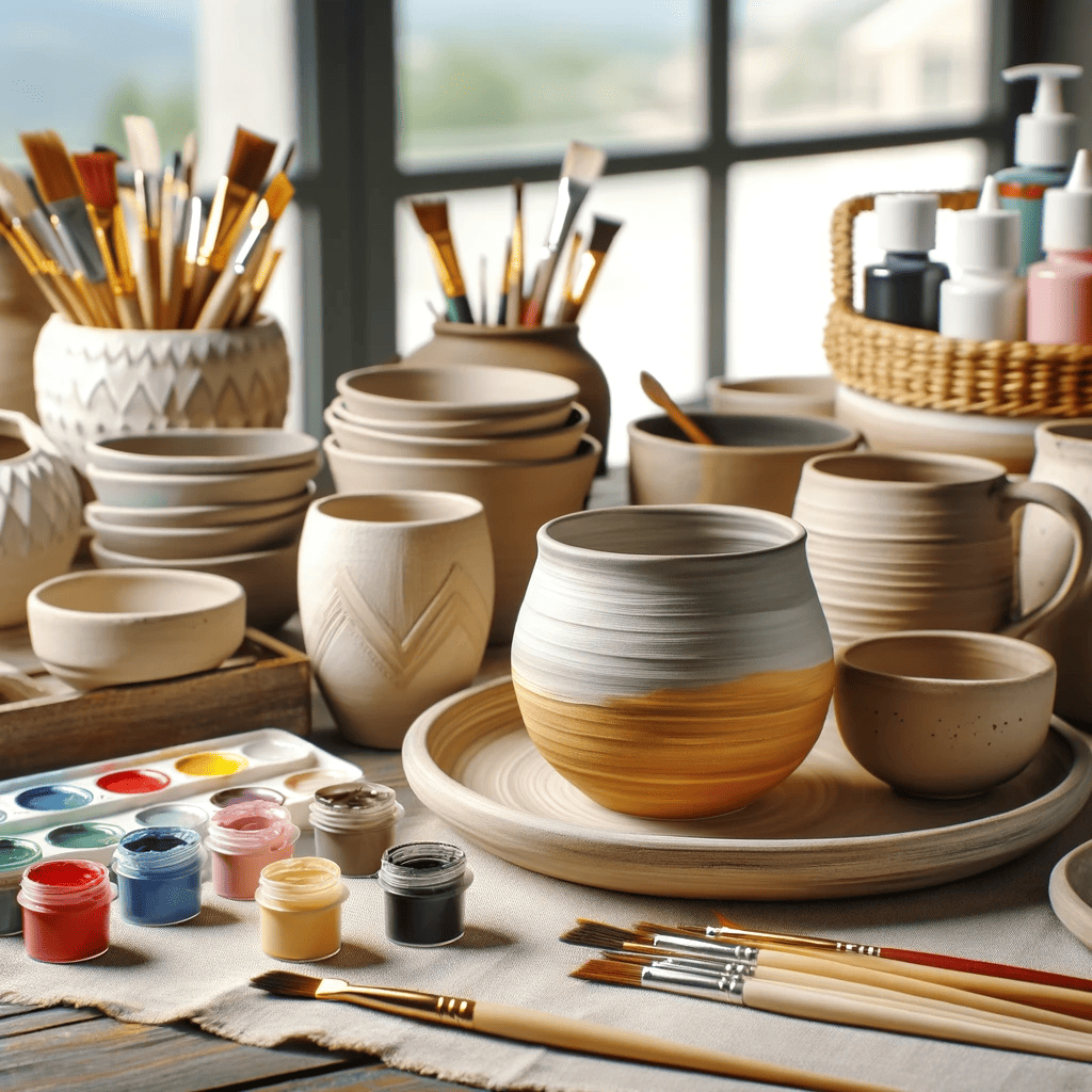 - Plain pottery pieces (mugs, plates, etc.)